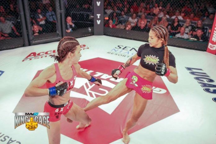 Nguyen has kept herself busy since her transition from ring girl to pro fighter in August 2015. She’s split her training time between her home town of Myrtle Beach, SC, and coach Donny Aaron’s Karate Mafia Gym in Bossier City, LA. She has wins over fellow KOTC fighters Cassie Robb, Bi Nguyen, and Elaine Santiago, and has become a popular recurring presence on RIZIN cards in Japan, where she has a win over Miyuu Yamamoto and a recent devastating KO loss to Rena Kubota.