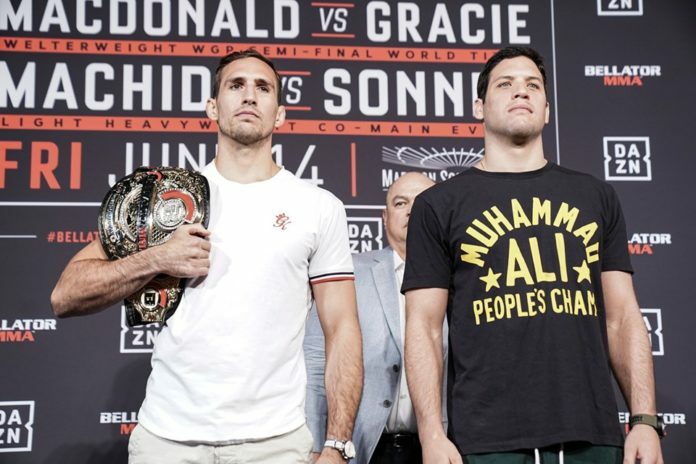 In the main event, Rory MacDonald and Neiman Gracie will face off for a potential 25 minutes in the Welterweight World Grand Prix semi-finals. MacDonald advanced following a draw with Jon Fitch in his last outing; since he came in as the 170-pound champion, he retained his belt thus moving forward in the tournament. Gracie also found victory advancing his placement in the tournament submitting Ed Ruth by rear-naked choke in the fourth.