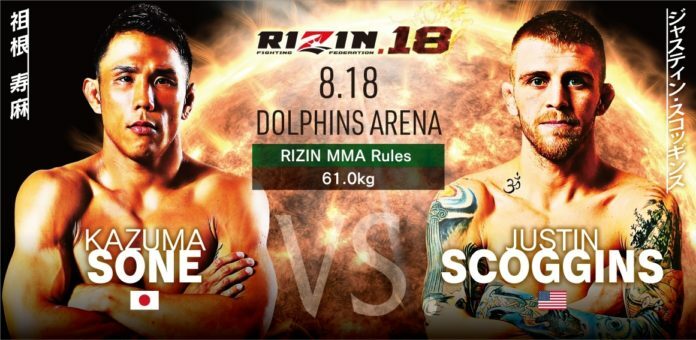 Former UFC flyweight Justin Scoggins (11-6) will be returning to RIZIN ring taking on former Shooto Pacific Rim featherweight champion Kazuma Sone (23-18-1) in a 61 kg./134 lbs. matchup. Both fighters will be looking for a win as both have lost in their RIZIN debuts. Scoggins, 27, lost to Yuki Motoya (who is on the card taking on Hiromasa Ogikubo) by scissors choke in the first round. Sone, 31, also lost to Motoya by rear naked choke in the second round. Both fighters come from a karate background. Scoggins with traditional kenpo and Sone with Ryukyu kenpo.