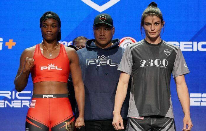 The second half of the PFL season begins tonight with PFL 4 2021, where lightweights and featherweights will take center stage once again. The event is headlined by a non-league lightweight showcase bout between 2012 and 2016 Olympic boxing gold medalist and undefeated professional boxing champion Claressa Shields, who is making her MMA debut, and the 3-6 MMA veteran Brittney Elkin. Elkin is looking for a better outcome against her second highly-touted Olympic gold medalist after losing by first-round submission in former judo great Kayla Harrison‘s MMA debut in 2018.