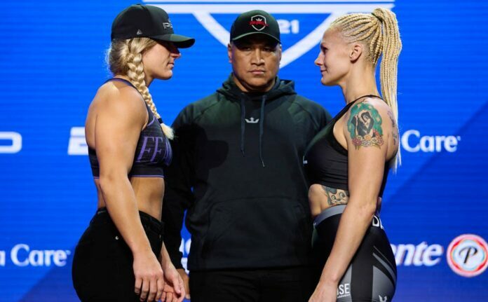 Larissa Pacheco def. Olena Kolesnyk via KO (punch) 4:48 of Round 1, earns 6 points and clinches spot in PFL playoffs (12 points total)