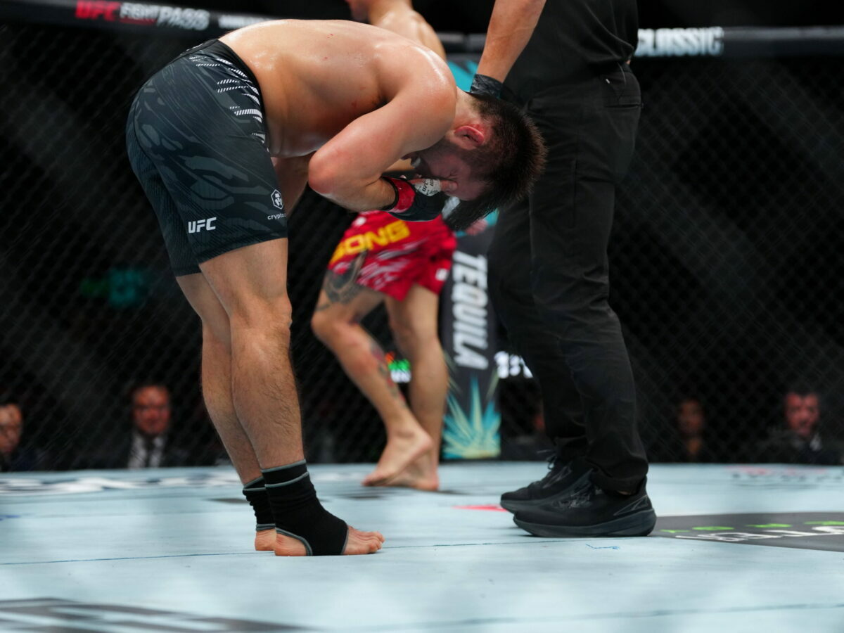 But then the Chinese phenom woefully stuck his finger into the charging Cejudo’s eye late into the third round. Taking the full five minutes to recover from the foul, Cejudo re-entered the bout, though he remained hesitant to engage in another fire fight due to his vision being apparently compromised as a result of the eye injury Song enforced. He did look to be ready to go out for the fourth round, but the damage to his eye had already been done, resulting in Cejudo willingly retiring from the contest, with Yadong being awarded the technical decision victory.