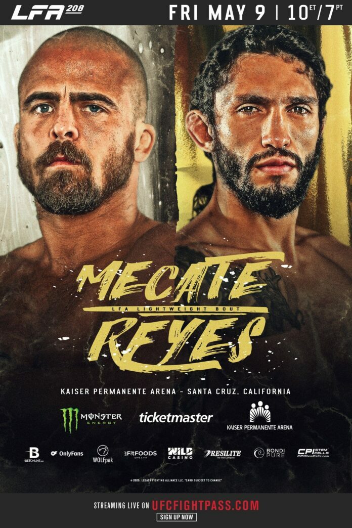 In what has become a California getaway for the company in previous years, LFA returns to Santa Cruz for LFA 208: Mecate vs. Reyes. With 13 bouts slated, all eyes will be on the Kaiser Permanente arena as fighters across the card look to punch their stamp to the next level.