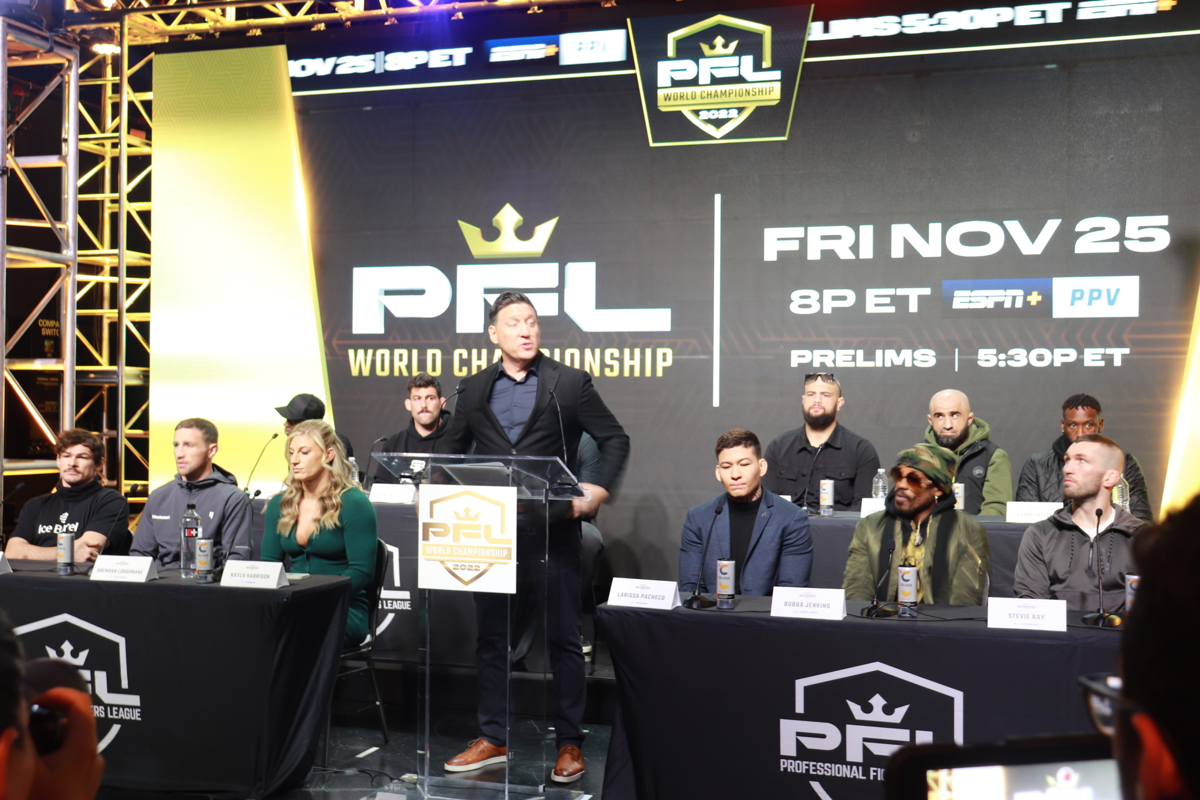 On Friday, six fighters will have the opportunity to win $1 million at the 2022 PFL finals. Those six fighters got to make their case today at a PFL press conference at the Hulu Theater at Madison Square Garden. Kayla Harrison (15-0), Larissa Pacheco (18-4), Brendan Loughnane (25-4), Sadibou Sy (12-6-2), Dilano Taylor (10-2), Bubba Jenkins (19-5), Ante Delija (22-5), Matheus Scheffel (17-8), Stevie Ray (25-10), Olivier Aubin-Mercier (16-5), Omari Akhmedov (24-7-1), and Rob Wilkinson (16-2) were all present to talk to the media ahead of their fights.
